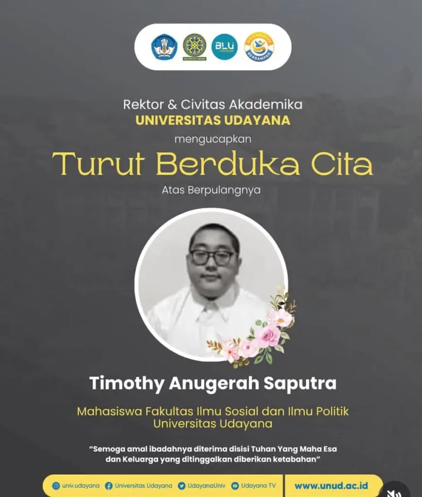 Tintanarasi.com, Nasional – Tragedi memilukan mengguncang Universitas Udayana (Unud), Bali, setelah seorang mahasiswa bernama Timothy ...