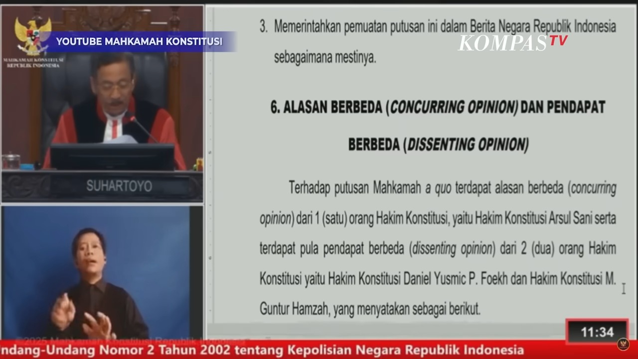 Putusan tersebut tertuang dalam perkara Nomor 114/PUU-XXIII/2025 yang dibacakan pada Kamis (13/11/2025).